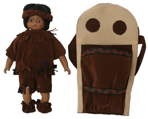 - Title : Native American Porcelain Doll 11 Inches Indian Baby Brown Color with Traditional Faux Brown Leather Dress, Brown Braids, Fur Cuffs and Headdress Styles in a Short Shirt and Pants and with Baby Carrier, Bulk Pack