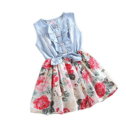 -. Title : FEITONG(TM) Lovely Baby Girl Tutu Denim Dress Short Sleeve Lace P.R.Incess Party Skirts