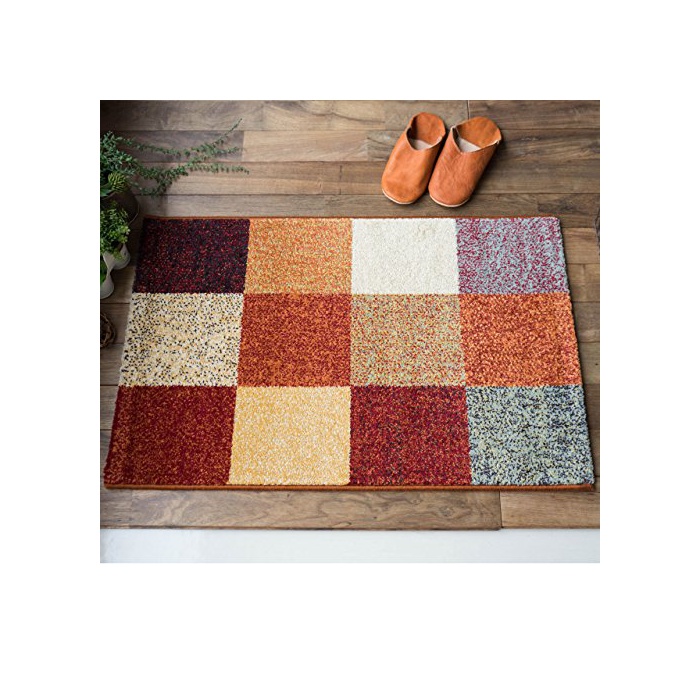 프로 수티부 록 옥내 실내복 현관 매트 프로 스테《》 블럭 멀티 컬러 약 50×80 cm 패치워크 체격 트위스트 pile 윌 톤 옷감 카펫트