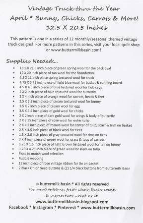 Vintage Truck Thru the Year - April - by Buttermilk Basin - Wool Applique Pattern - 12.5" x 20.5" BMB 1337