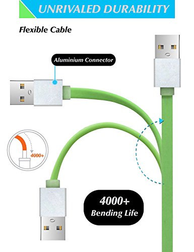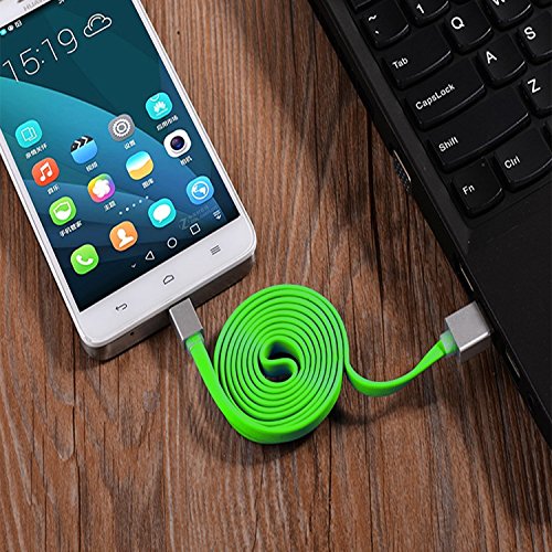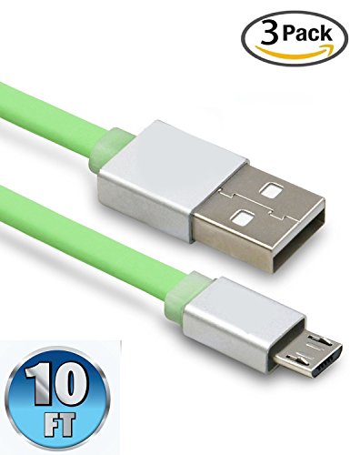 Android Charger, Myckuu 3 Pack 10ft 3M Durable flat noodle Tangle-Free Micro USB 2.0 Charge Cable Sync Charging Cord for Android, Samsung, HTC, Sony, Nokia and More (green)