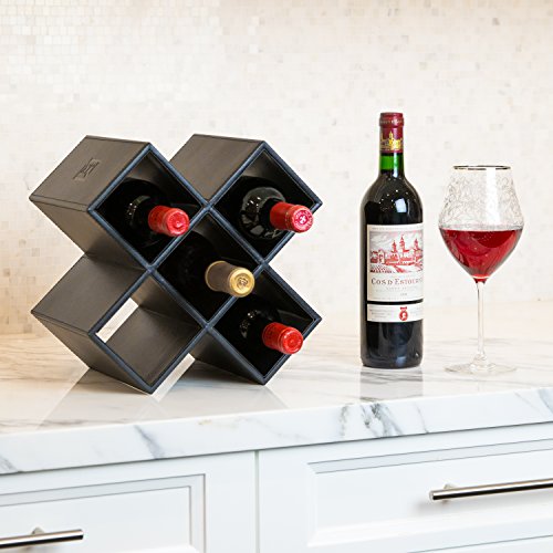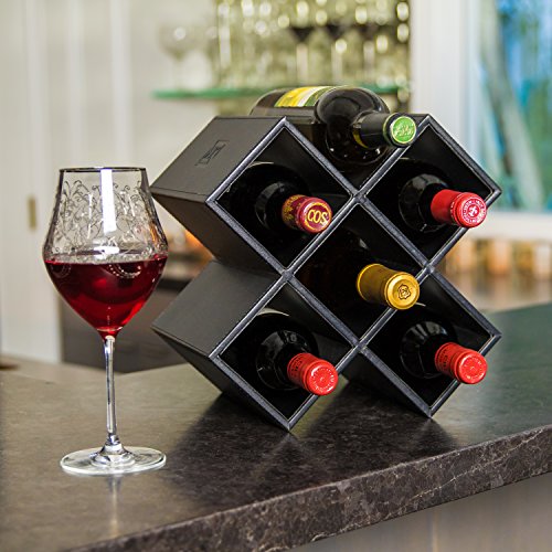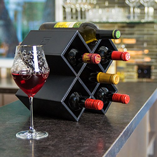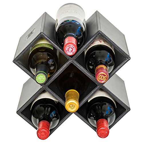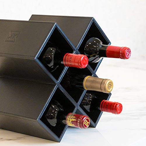Kaydian Krafts Leatherette Countertop Wine Rack - 6 Bottle Decorative Tabletop Wine Organizer - No Assembly Required and Perfect for Shelving