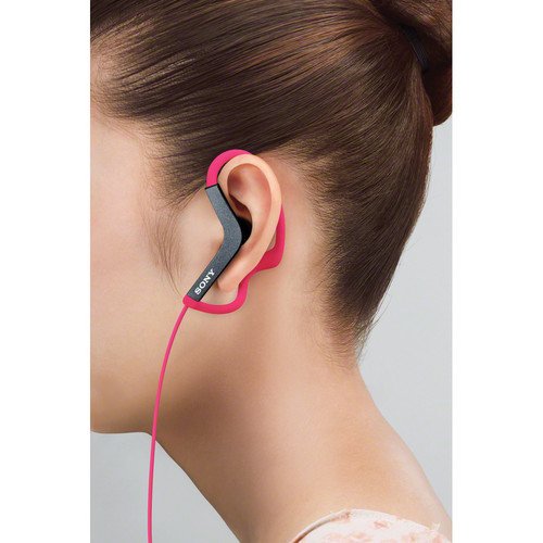 The Pink Sony Active Sports Headphones have an ear-loop hanger design to provide a secure fit during active use. These lightweight and water-resistant active sports headphones are great for listening to music during intense workouts without worrying about the earbuds falling out. Fuel your next workout with the Sony active sports headphones. Boasting a lightweight and water-resistant design, these headphones make it easy to add a heart-pumping soundtrack to whatever you may be doing. Your music will sound great thanks to 13.5mm high sensitivity driver units while the unique loop hanger fits comfortably over your ear so you can play hard without fear of unexpected earbud drop-out. There's also a handy cord clip for unfettered activity.
