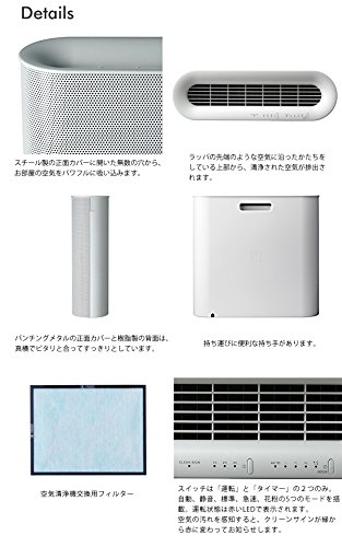 공기를 필터에 통해 예쁘게 하는 장치이기 때문에,장치의디자인도 아름다운 편이 좋다.공간이 아름답고지면,공기가 더 예쁘게 된 느낌이 합니다.디자인가 아름다우면 모습이 아름답고 됩니다.방의 모퉁이에 똑(오도커니) 서서 있는 자세가 예쁩니다.색은 검정과 그레이와 흰색.3단계의 모노톤이 준비 되고 있기 때문에 방의 색 에 따라 선택해 쉬워지고 있습니다.세세하게 구멍이 연 금속의 전면 케이스는 texture로 녹아 두드러지지 않습니다.표면은 청정 된 공기가 배출되는 부위에 la pa의 끝과 같은 공기에 따른 형태를 하고 있습니다.