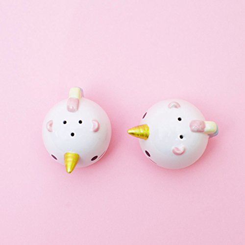 SMOKO Ceramic Hand Painted Elodie Unicorn Salt and Pepper Shakers will look super-cute on your table and bring a smile to your face every time you use them. Hand-painted details include a pearlescent, golden horn, pink ears and rainbow tail. Spherical shape increases the adorable factor while making these shakers easy to grip and comfortable in the hand. The shakers offer 1/8 inch dispensing holes on top (two for pepper, three for salt), 1/2 inch filling holes on the bottom, and fill plugs. Whether for the salt and pepper shaker collector, unicorn lover, or fan of all things kawaii, these shakers are both amusing and practical. 3.5 inches high by 3 inches across (from tip of horn to widest point on tail). Hand wash. We know these shakers are very cute, but they are not toys (and not intended for use by children under six years of age). 0 |