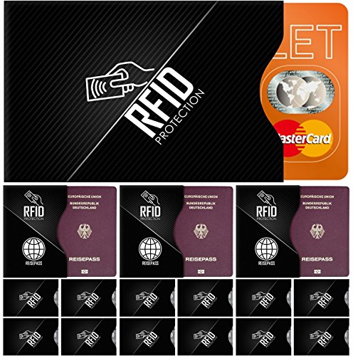 -. Title : RFID Protection Schutzhülle (15 Stück) für Bankkarte, Personalausweis, EC-Karte, Kreditkarte und Reisepass - 100% Datenschutz durch Abschirmung von kontaktlosen RFID & NFC Funk-Chips