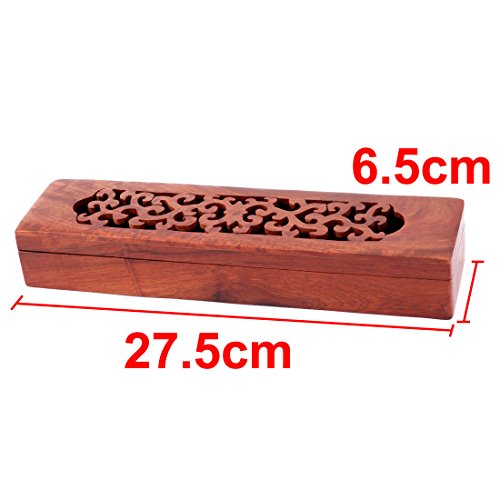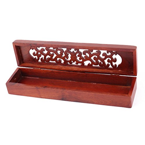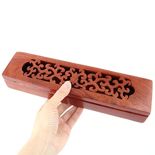 uxcell Home Rectangular Shaped Hollow Carved Design Incense Holder Storage Box Red