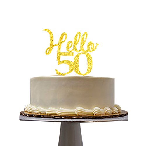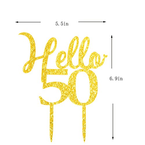 Hello 50 gold acrylic cake topper 50th birthday party decorations