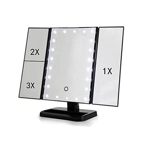 Zinnor Makeup Mirror Vanity Trifold 24-LED Lighted with Touch Screen, 1x/2x/3x Magnification,90 Degree Free Rotation Table Countertop Cosmetic,Three...