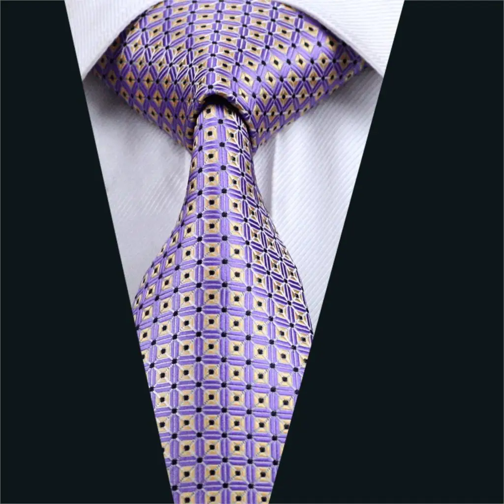 | [해외]DH-572 남성 실크 넥타이 보라색 격자 무늬 넥타이 100% 실크 자카드 남성 넥타이 비즈니스 웨딩 파티 무료 배송 |