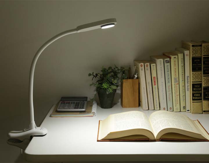 「まぶしさガード」採用で、手元は明るく、光源はまぶしくない、目にやさしいLEDデスクライトです。