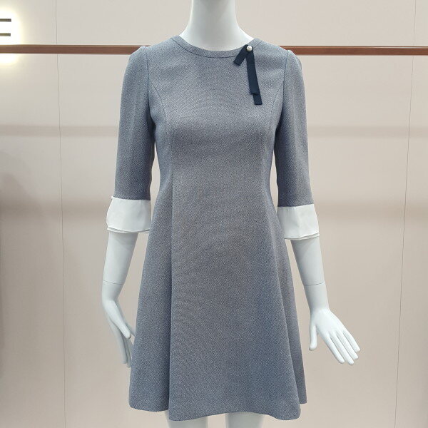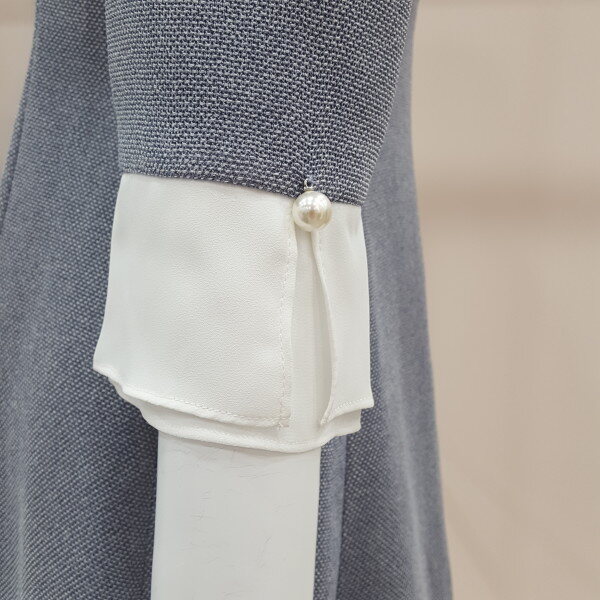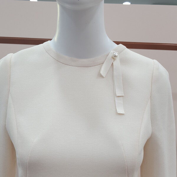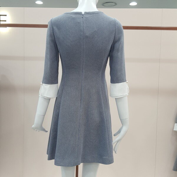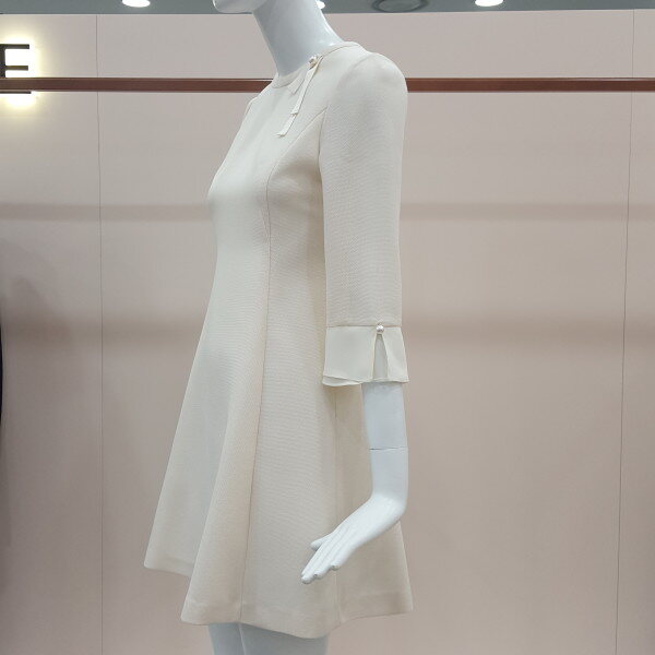 기본 원피스 이며 진주장식이 기본 단조로움을 보안함 A라인으로 날씬해 보임 칠부 소매 길이로 간절기에 착용하기 좋음