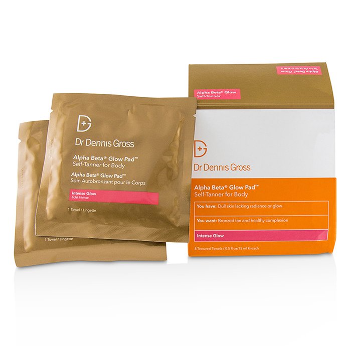 Dr Dennis Gross Alpha Beta Glow Pad Self-Tanner For Body - Intense Glow (Box Slightly Damaged) 8 Towels