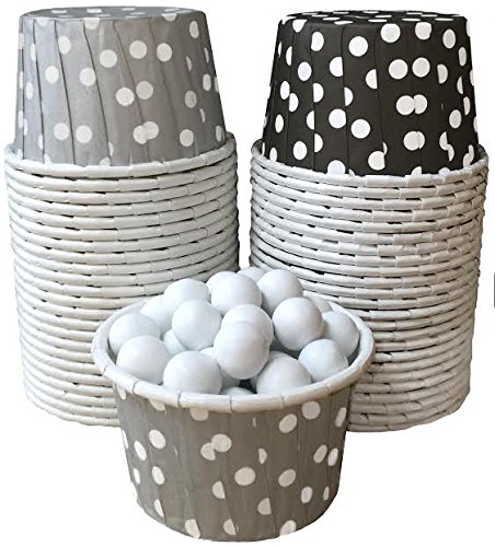Outside the Box Papers Silver, Black and White Polka Dot Candy/Nut Mini Baking Cups 48 Pack Black, Silver, White