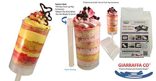 Giarraffa Co Cake Push Pop Containers 24 Ct with Screw in Stick and Base, 1" Flat Top Lids and 1-12 Hole Paperboard Tray