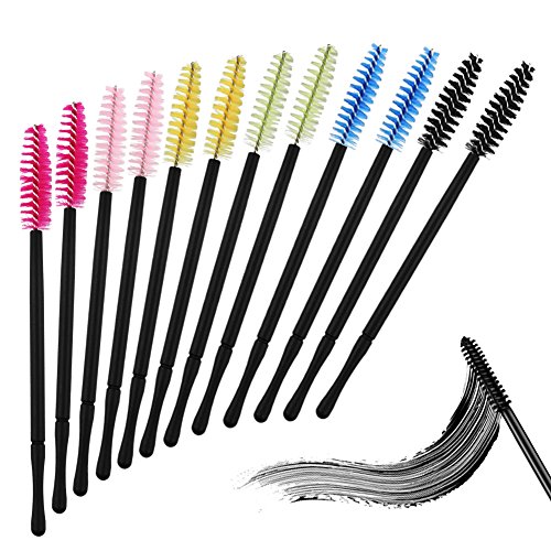 Accmor 300 pcs Multicolor Disposable Mascara Wands Eyelash Eye Lash Brush Makeup Applicators Kit, 6 Colors