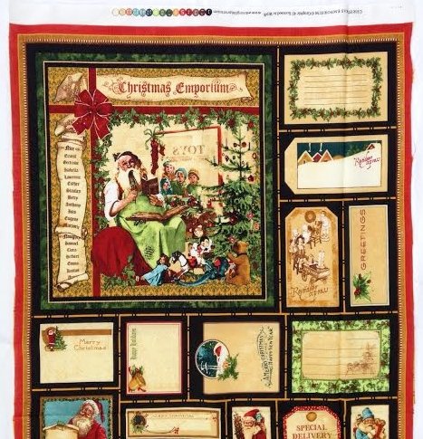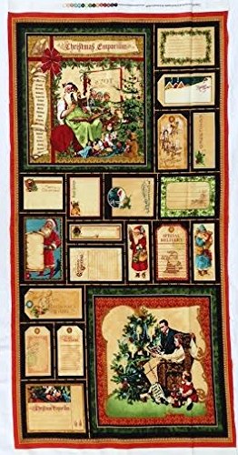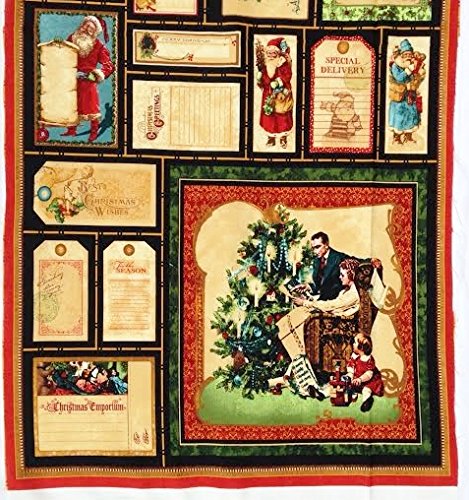 Father Christmas "Christmas Emporium" Quilt Block Fabric Panel (Great for Quilting, Sewing, Craft Projects, a Quilt, Throw Pillows & More) 22" X 44" Tall
