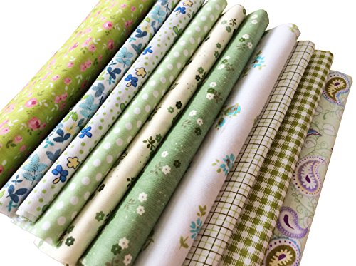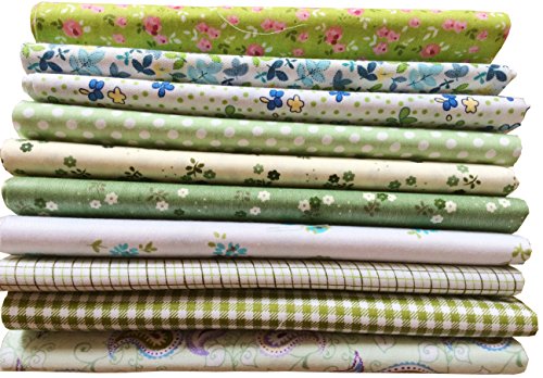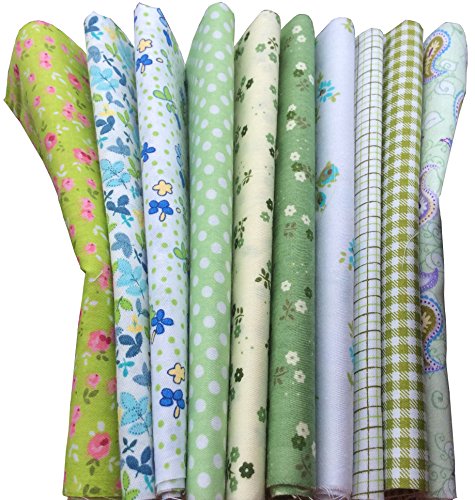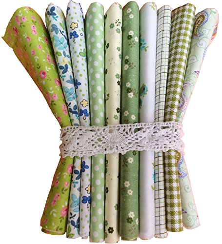 longshine-us 10pcs No Repeat Design Premium Cotton Craft Fabric Bundle Squares Patchwork Lint DIY Sewing Scrapbooking Quilting Dot Pattern Artcraft (11.8" x 11.8", Green)