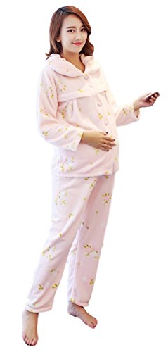 -. Title : (Miwoluna) マタニティ パジャマ ルームウェア 冬 花柄 ふわふわ もこもこ 長袖 授乳服 上下セット 前開き 温かい 暖かい 産前産後 妊婦 ウエスト調整可能