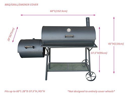 iCOVER 60 Inch Heavy-Duty Premium classic outdoor BBQ Barbecue Black Off-Set Smoker Cover G21608 for weber char-broil Brinkmann Nexgrill