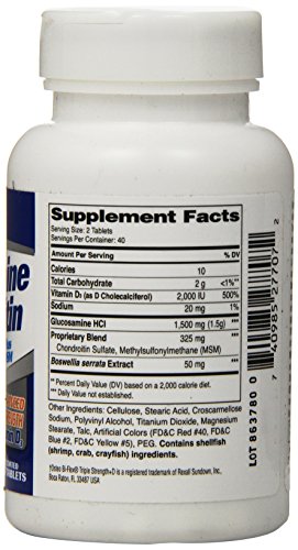 -. Feature : Compare active ingredients to Osteo Bi-Flex Triple Strength plus D / Two coated tablets per day / No added sugar, artificial flavors or preservatives / Gluten free