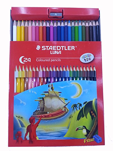 Staedtler Colored Pencils, 24 Colors, Pre-Sharpened, Free sharpener (Luna-24ct)