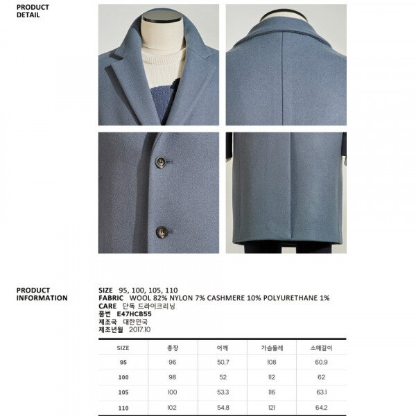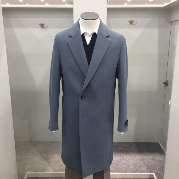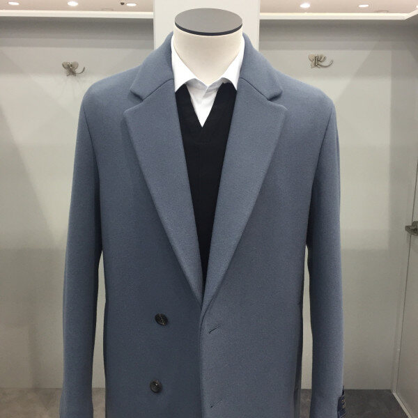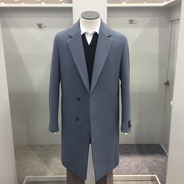 17FW EZIO HOMME 스카이블루 반더블 세미오버핏 코트 세번수의 고급울과 캐시미어를 함유한,가장고가의 프리미엄 캐시미어 이중지 코트로 소프트함과 중량감을 고루갖춰 형태감을 유지하면서도 편하게 착용할 수 있는 세련된 코트 입니다