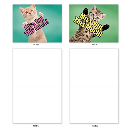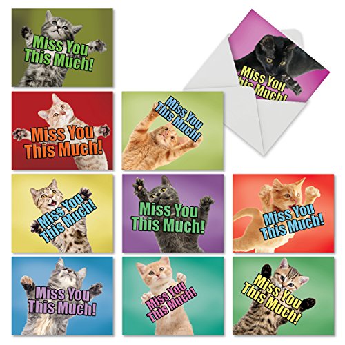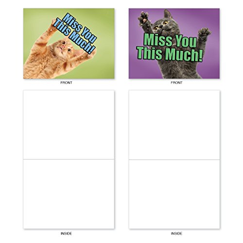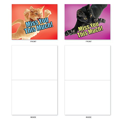 M6599MYB Cat Miss You This Much: 10 Assorted Blank Miss You Note Cards Featuring Cats Holding Their Arms Wide to Show You How Much They Miss You, w/White Envelopes.