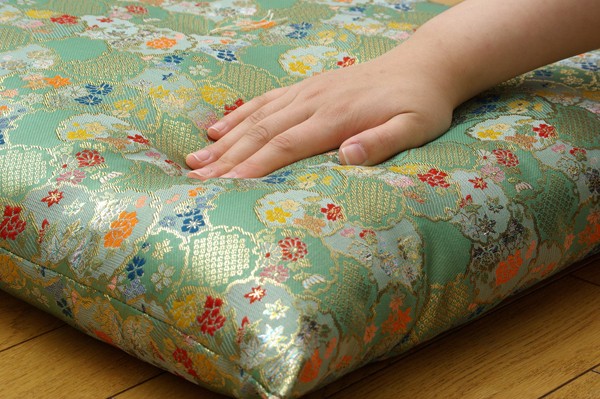 金襴生地を使用した八端判サイズ(59×63cm)の仏前用座布団です。お盆の準備や、新しくご仏壇をご購入された方にもお勧めの一品です。中材にはポリエステルわたに、綿わたを混ぜる事で重量感としっかりとした座り心地を出しています。収納に便利な不織布袋付きです。※表記サイズは側サイズです。製品サイズは53~55×57~59cmになります。