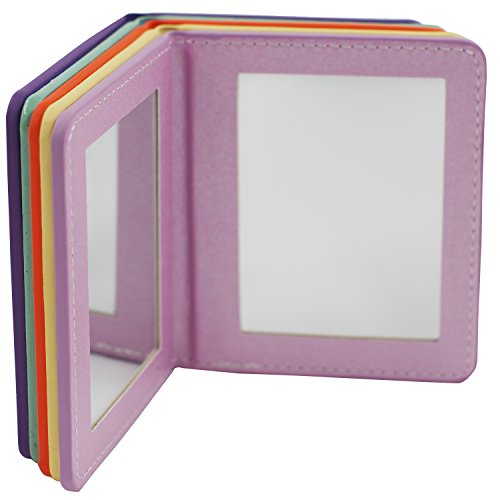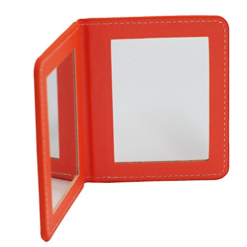 Rnow Deluxe PU Leather Folio Book Style Double Sided Compact Pocket Size Mirrors Orange