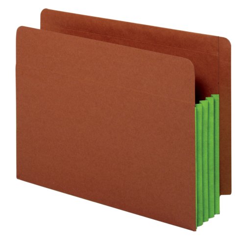 Globe-Weis End Tab File Pockets, 3.5-Inch Expansion, Green Tyvek Gussets, Brown Cover, Letter Size, 10 Pockets Per Box (63680GW)