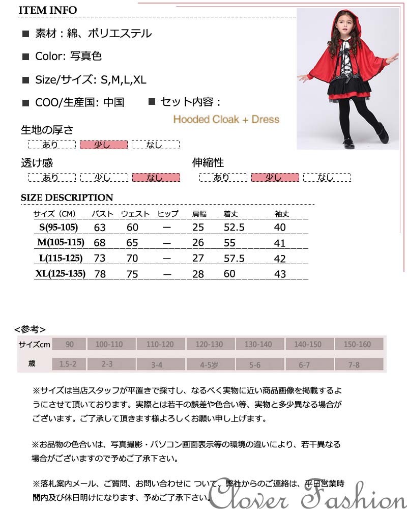 送料無料 キッズ レッドケープガール 赤ずきん 赤頭巾ちゃん 子供服 女の子 コスプレ 可愛い dress ハロウィン 衣装 子供 クリスマス パーティー 子供用 ディズニー 仮装衣装 コスチューム サンタ キッズ 児童服 2点セット 激安 ダンス衣装 舞台