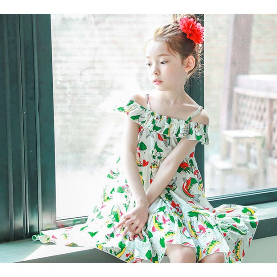 メール便送料無料 韓国風 韓国子供服 夏 ビーチプリント ワンピース キャミソールワンピース ノースリーブ 夏 ワンピース 花ワンピース 薄手 女の子 子供 花柄 ビーチウェア リゾート バカンス 旅行 韓国子供服