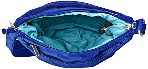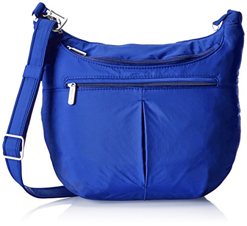 Always loosing your phone in the bottom of your bag? Our new Classic Slough Hobo bag solves that issue with a quick grab smart phone pocket, never miss a call again! Bag comes with locking main compartment with RFID blocking car and passport slots, slash-proof construction, adjustable, cut-proof strap attaches to post or chair for added safety, additionally there are two front zip pockets and a rear slash pocket. Includes tethered key clip with LED light. .For more than 35 years, Travelon has been making travel easier and safer with products that provide protection, peace-of-mind, safety, security and organization. Travelon’s Anti-Theft Crossbody and travel bags protect from pickpockets and thieves and are customer top rated. Classic silhouettes in soft fabrics provide great function and fashion.Feature