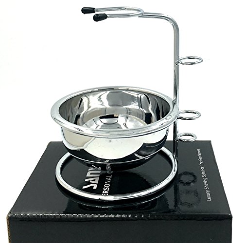 - Universal stand for shaving brush,consist with a special designed Stainless bowl. And there is a small razor holder on stand, Which can hold a shaving brush and get your shaving items organized and clear