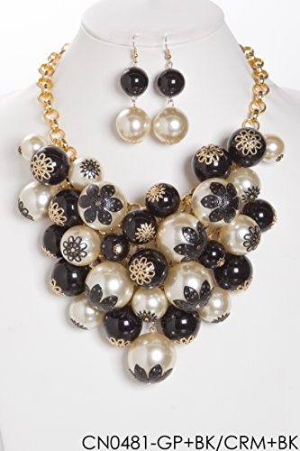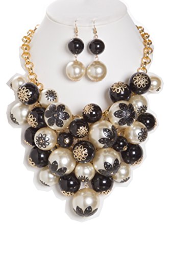 WOMEN'S FASHIONABLE PEARL WITH FLOWER CAP BIB NECKLACE AND EARRINGS SET