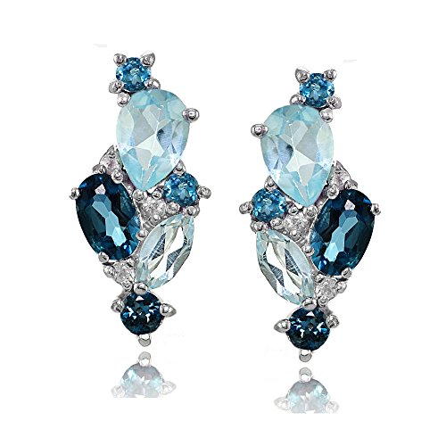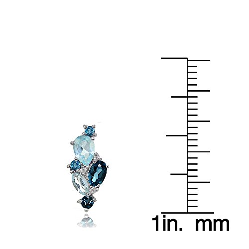 Beautiful cluster drop earrings featuring a mix of london blue topaz and blue topaz stones set amongst smaller white topaz stones. The spark from the different stones gives off a natural shine. Crafted of fine sterling silver and secured by post with friction backs.Feature