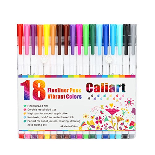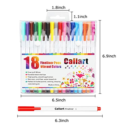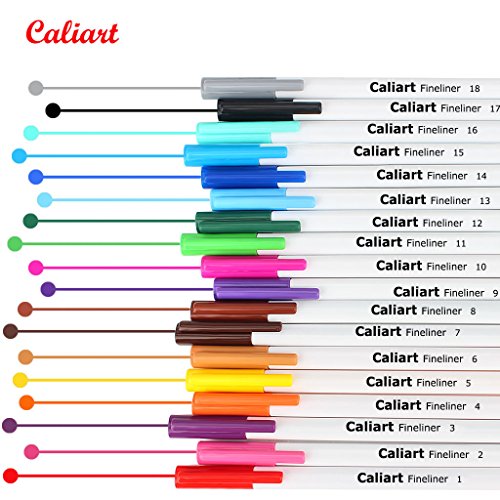Caliart 18 Fineliner Color Pen Set, 0.38 mm Colored Fine Line Drawing Pen, Porous Fine Point Marker Pens for Bullet Journal Coloring Book and Art Projects