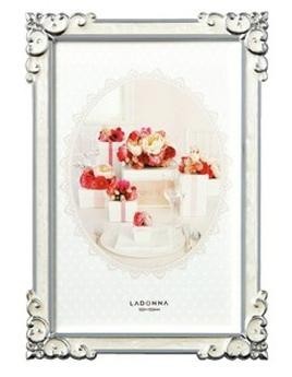 ブライダルギフトとしてはもちろん、自分の部屋にも置きたくなる、かわいいデザイン。 製造国:中国 素材・材質:亜鉛合金、シルバーメッキ、クリスタル、エポキシ 仕様:外寸:115×166mm内寸:104×155mm窓寸:89×140mm(ポストカード判)マット窓寸:77×115mm(L判)置き専用縦横兼用 ※サプライヤー直送品 ご注文後3~4営業日後の出荷となります【商品名】ラドンナ ブライダルフォトフレーム 115×166 MJ63-P-WH