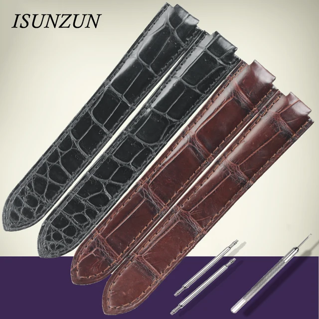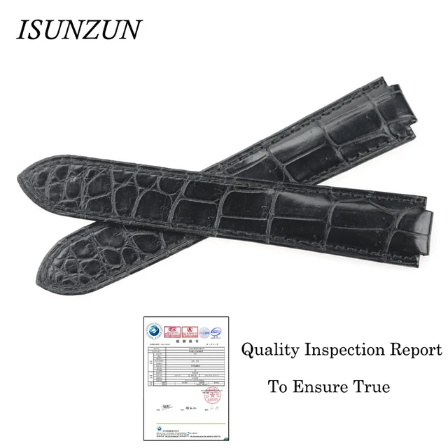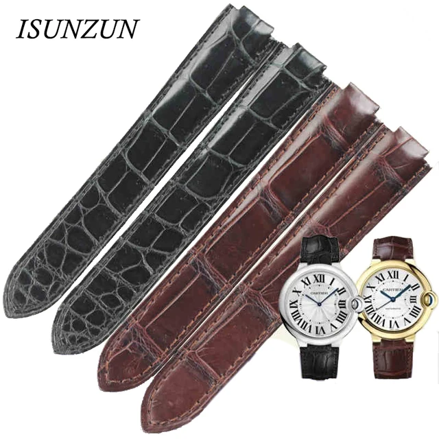 Isunzun 손목 cartier 발롱 블루 스타일 시계 밴드 악어 정품 가죽 스트랩 시계 남성 손목 시계