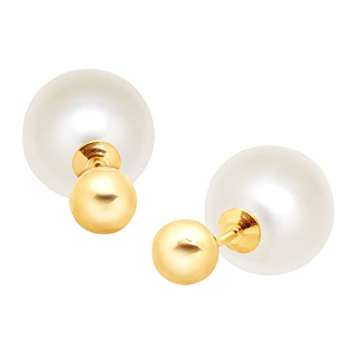 Make these pearl studs an everyday staple in your collection! 7.75 mm simulated pearls are set on 14K gold posts and feature screw backs for an added touch of elegance. Pieces measure 7/16 by 7/16 inches.Feature