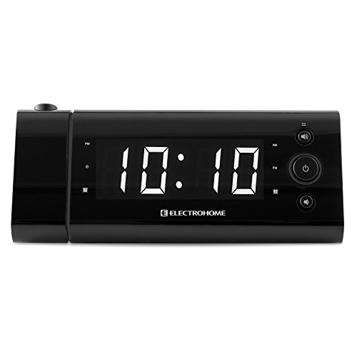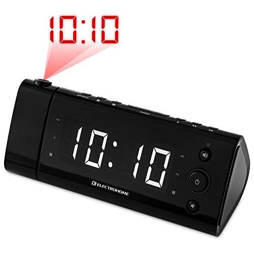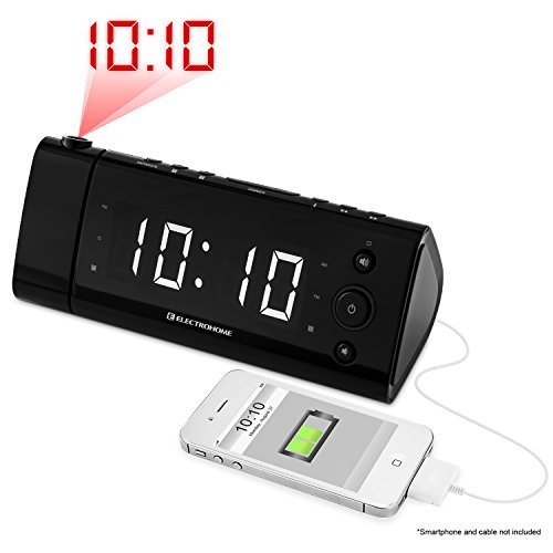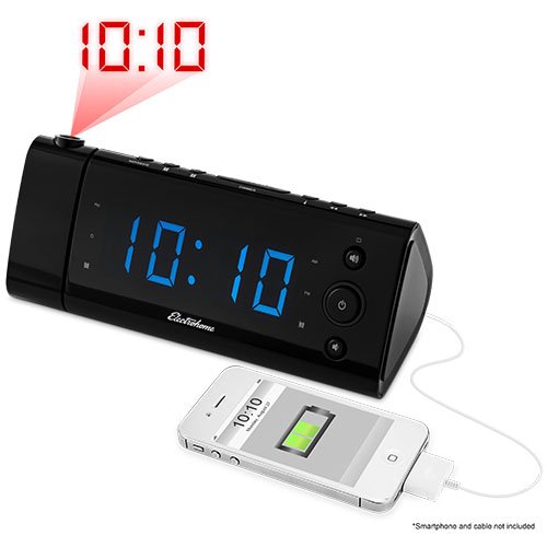 Electrohome® USB Charging Alarm Clock Radio with Time Projection, Battery Backup, Auto Time Set, Dual Alarm, 1.2" LED Display for Smartphones & Tablets (EAAC475W)