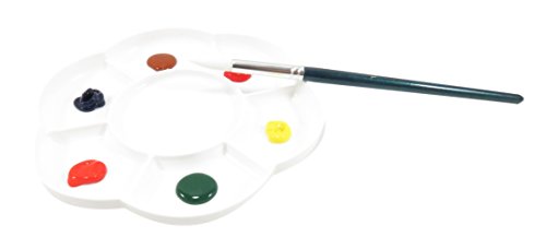 -. Binding : Office Product -. Brand : Daiso -. Color : white and green -. EAN : 0697111829011 -. Feature : THE SPECIFICS: Bundle of 7: plastic paint palettes measure 6.75" x .5" (large); 3.25" x .25 (small) and green paint brushes range from large 8.25" to small 6.75". / GREAT FOR KIDS: These lightweight palettes are perfect for your kids. The large palette has several wells for your paint and a center area to mix a few colors. The small palette is great for little kids to experiment with painting. / MULTI-PURPOSE: This set can be used for face painting or art projects. You can even the small tray for mixing your nail art painting or organizing your manicure decorations. / VARIETY OF BRUSHES: Enjoy the five brushes of various sizes for your painting creations. / GREAT GIFT: These make great back-to-school gifts for your children and friends who are art enthusiasts. Or bring them out during those cold, snowy or rainy winter months to make use of the time in a fun way. -. Label : Daiso -. Manufacturer : Daiso -. MPN : 252 -. PackageQuantity : 7 -. PartNumber : 252 -. ProductGroup : Art and Craft Supply -. ProductTypeName : ART_SUPPLIES -. Publisher : Daiso -. Studio : Daiso -. Title : Flower Paint Palettes White With Paint Brushes Green (Bundle of 7) -. UPC : 697111829011