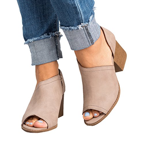 (Younsuer)/Women's/Boots/DIRECT FROM USA/Women Low Heel Ankle Booties Slip On Vegan Suede Leather Cut Out Chunky Block Stacked Peep Toe ...