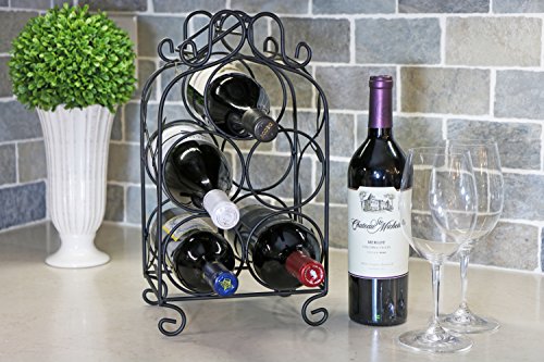 Rosabel 5 Bottle Metal Wine Rack for Tabletop or Countertop by KitchenEdge, Free Standing, Black, Wrought Iron