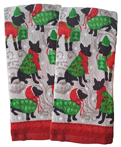 - Set of 2 soft plush kitchen towels featuring dogs in silhouette dressed for the winter holiday--Black Lab, Dachshund (Weiner Dog) French Bulldog.