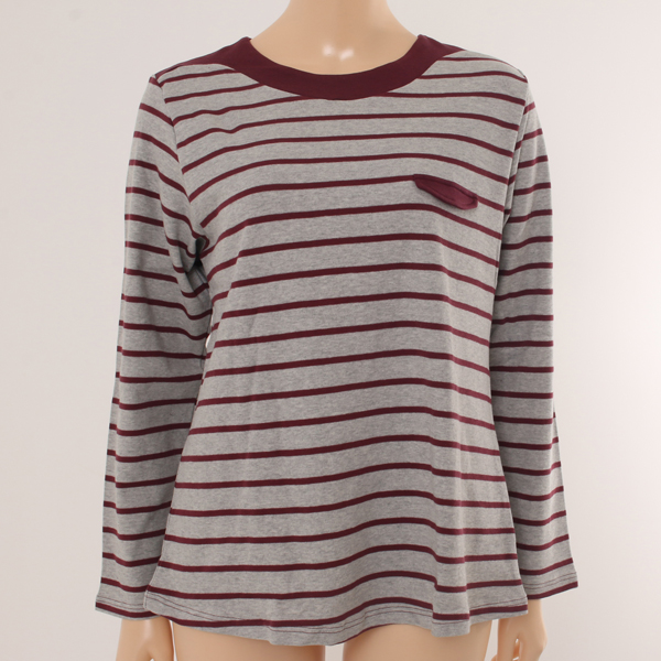 멜란지 그레이와 스트라이프의 심플한 칼라감의 상의로 구성한 이지웨어입니다.