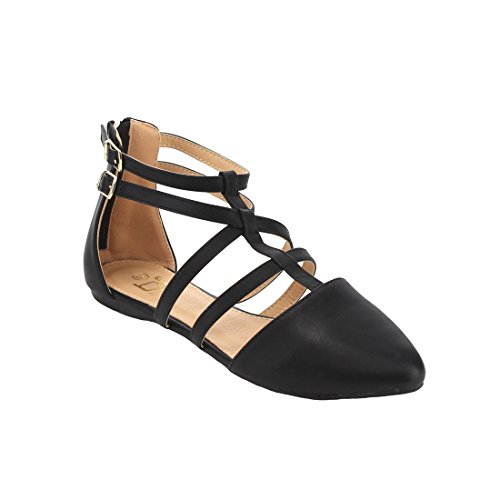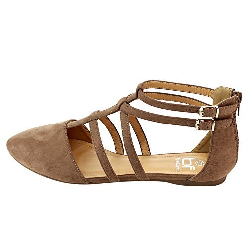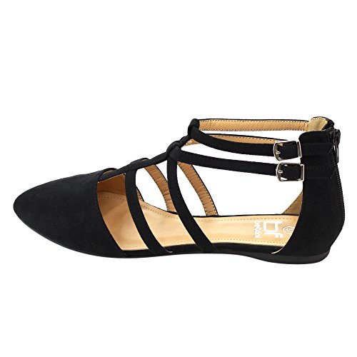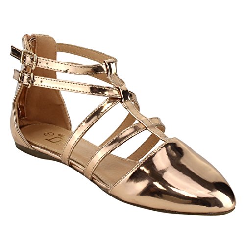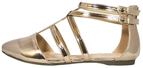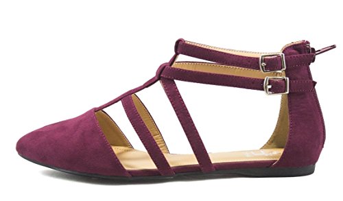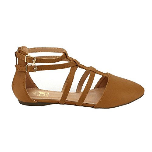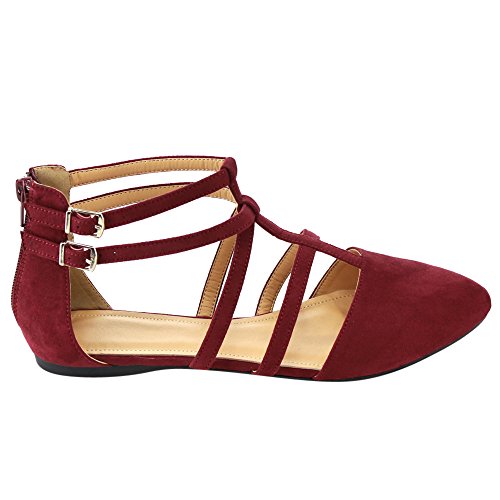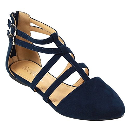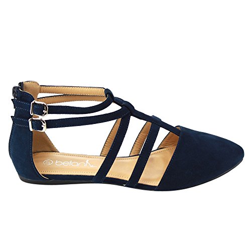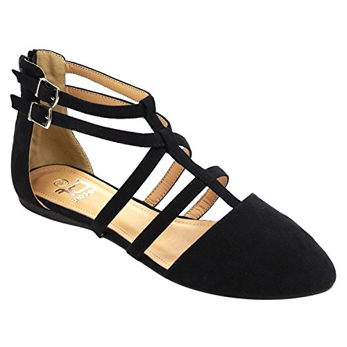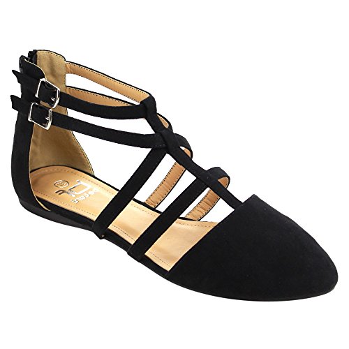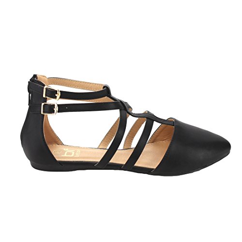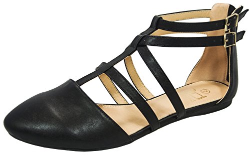 | Betani FC42 Women's Double Ankle Strap T-strap Ballerina Flats Half Size Big |