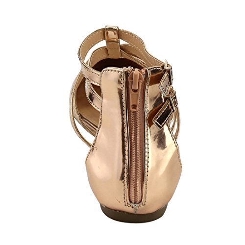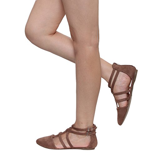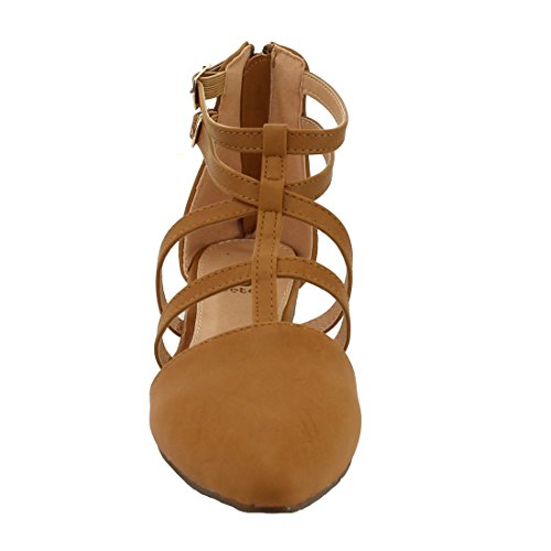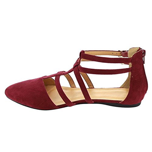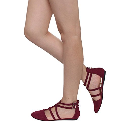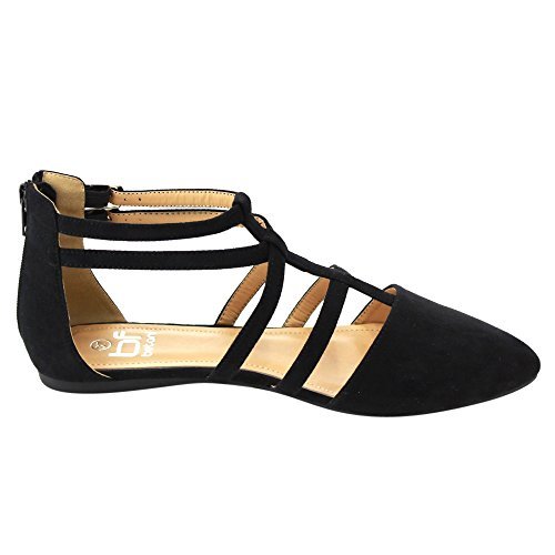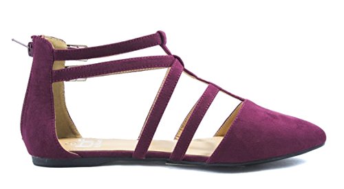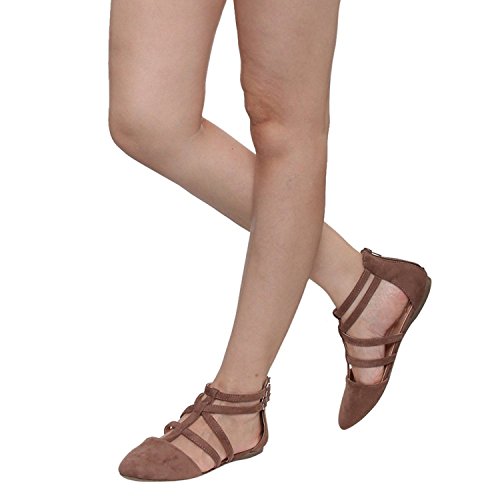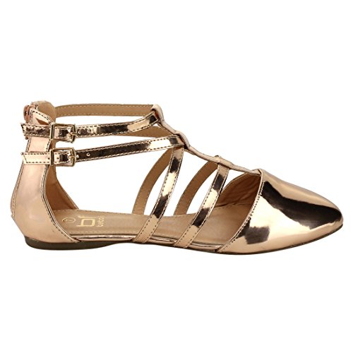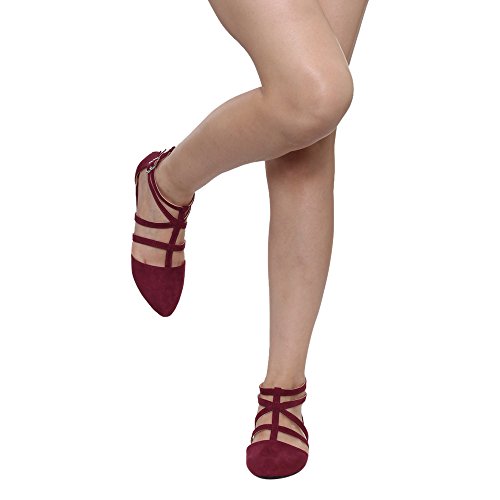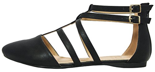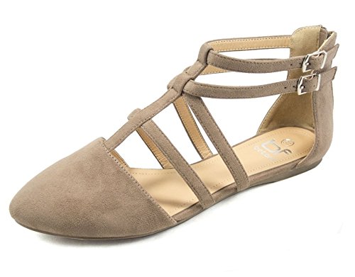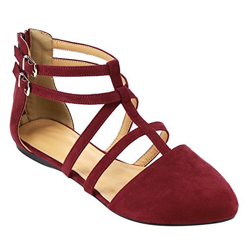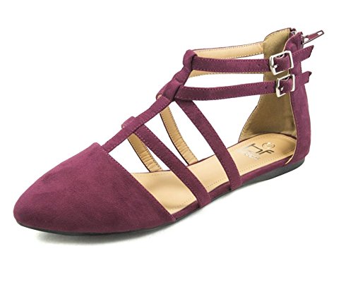 | Betani FC42 Women's Double Ankle Strap T-strap Ballerina Flats Half Size Big |