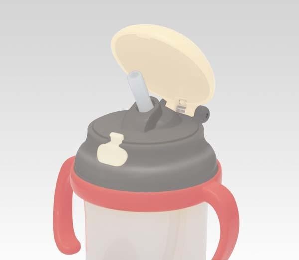 | ワンプッシュでフタが開き、シリコン製で口当たりの優しいストローが跳ね上がります。斜めに出るので、飲みやすくなります。 |